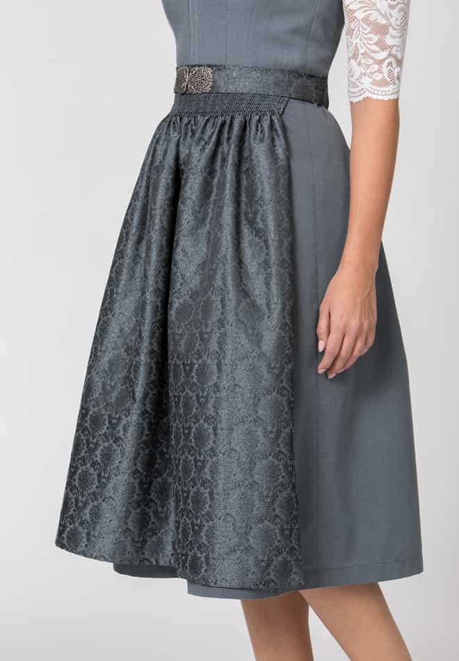 Das Dirndl Aurelia von Heimatgwand vereint klassische Trachtenlinien mit modernen Akzenten und richtet sich an Frauen, die Tradition lieben, aber Wert auf zeitgemäße Details legen. Das Modell überzeugt durch sein dezentes Mieder, den eleganten Münchner Schnitt und die hochwertige, auffällige Schürze, die zum Blickfang des Dirndls wird. Der klassische Münchner Schnitt sorgt für eine feminine Silhouette und einen elegant gerahmten Ausschnitt. Ein verdeckter Reißverschluss sorgt für eine klare Linienführung und hohen Tragekomfort. Das dezent gemusterte Mieder setzt das Fundament des Looks, während die farblich abgestimmte Schürze mit markantem Jacquardmuster und verzierter Schließe in Altsilber den besonderen Akzent bildet und das Design stilvoll abrundet. Aurelia ist die perfekte Wahl für Frauen, die klassische Trachtenmode mit modernen Details kombinieren möchten – ideal für festliche Anlässe, traditionelle Feiern oder besondere Momente.