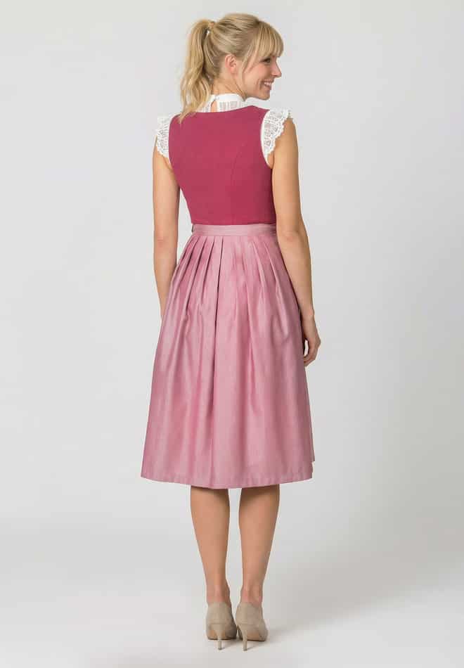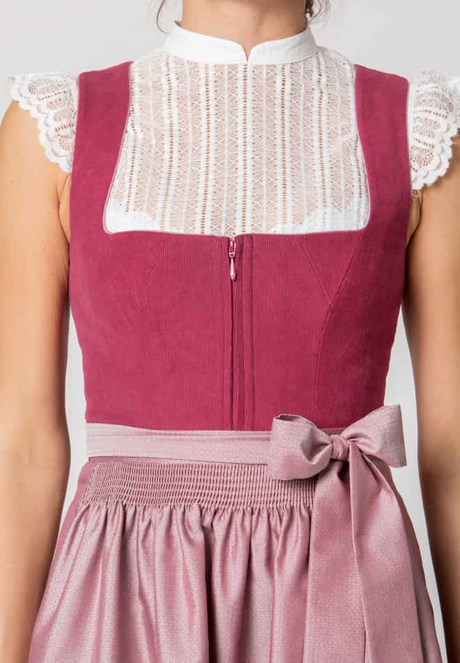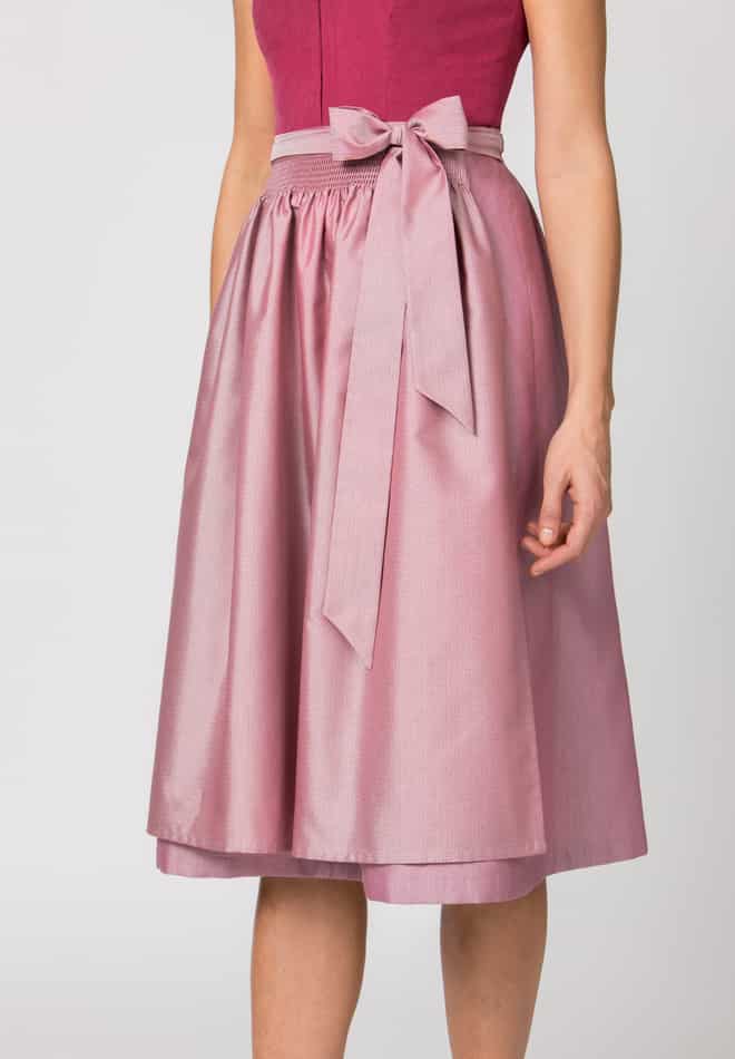 Das Dirndl Marcy aus hochwertigem Feinsamt mit dezenter Rippstruktur überzeugt durch ein angenehm weiches Tragegefühl und eine zurückhaltende, feminine Eleganz. Die harmonische Farbgebung im Color-Drenching verleiht dem Modell einen besonderen Effekt, der subtil auffällt und das Dirndl zu einem echten Blickfang macht. Beim Color-Drenching geht es darum, einen einzigen Farbton von Kopf bis Fuß zu tragen, um einen intensiven, durchgehenden Farbstrom zu erzeugen. So wirkt der Look gleichzeitig luxuriös und minimalistisch. Dieser mutige und wirkungsvolle Stil setzt auf die Kraft der Farben, die das Gesamtbild auf eine einzigartige Art und Weise vervollständigen. Der klassische Münchner Schnitt wird durch eine feine Paspolierung elegant betont, während Formstäbchen die Silhouette sanft modellieren. Der verdeckte Reißverschluss sorgt für eine klare, schlanke Linienführung und hohen Tragekomfort. Der in Falten gelegte Rock verleiht dem Dirndl Leichtigkeit und Bewegungsfreiheit, während das dezente Streifen-Muster dem Modell einen stilvollen, klassischen Charme verleiht. Die hochwertige Jacquard-Schürze setzt elegante Akzente und rundet das Gesamtbild harmonisch ab. Marcy ist der ideale Begleiter für traditionelle Feste, festliche Anlässe oder besondere Momente, in denen zeitlose Eleganz und feminine Ausstrahlung gefragt sind.