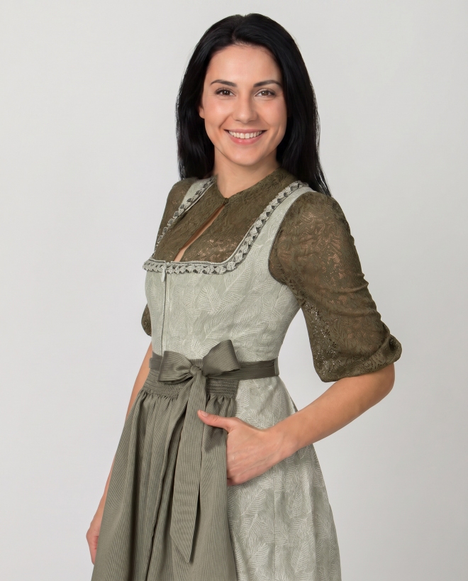 Das Dirndl Sophie von Heimatgwand verbindet traditionelles Trachtendesign mit einer angenehm zurückhaltenden Eleganz. Es richtet sich an Frauen, die klare Linien und hochwertige Materialien schätzen und ein Dirndl bevorzugen, das durch seine feinen Details und seine ruhige, edle Ausstrahlung wirkt. Der klassische Münchner Schnitt rundet das Gesamtbild mit einer sorgfältig gearbeiteten Froschmaulborte ab. Eine dezente Paspolierung ergänzt diese Optik und verleiht dem Mieder eine präzise, elegante Kontur. Die stimmige Stoffkombination sorgt dafür, dass Sophie eine ganz eigene Handschrift trägt – zeitlos, hochwertig und authentisch. Formstäbchen im Mieder sowie der verdeckte Reißverschluss formen eine sanfte, feminine Silhouette und bieten gleichzeitig hohen Tragekomfort. Der gewebte Baumwollstoff setzt natürliche, stilvolle Akzente und unterstreicht die hochwertige Verarbeitung des gesamten Modells. So entsteht ein Dirndl, das Tradition nicht nur bewahrt, sondern sie modern und leicht interpretiert. Mit seiner klaren Eleganz ist Sophie ein vielseitiger Begleiter – perfekt für festliche Anlässe oder traditionelle Feste. Ein Dirndl für Frauen, die Wert auf Qualität legen und gleichzeitig einen zurückhaltenden, dennoch eindrucksvollen Look bevorzugen.