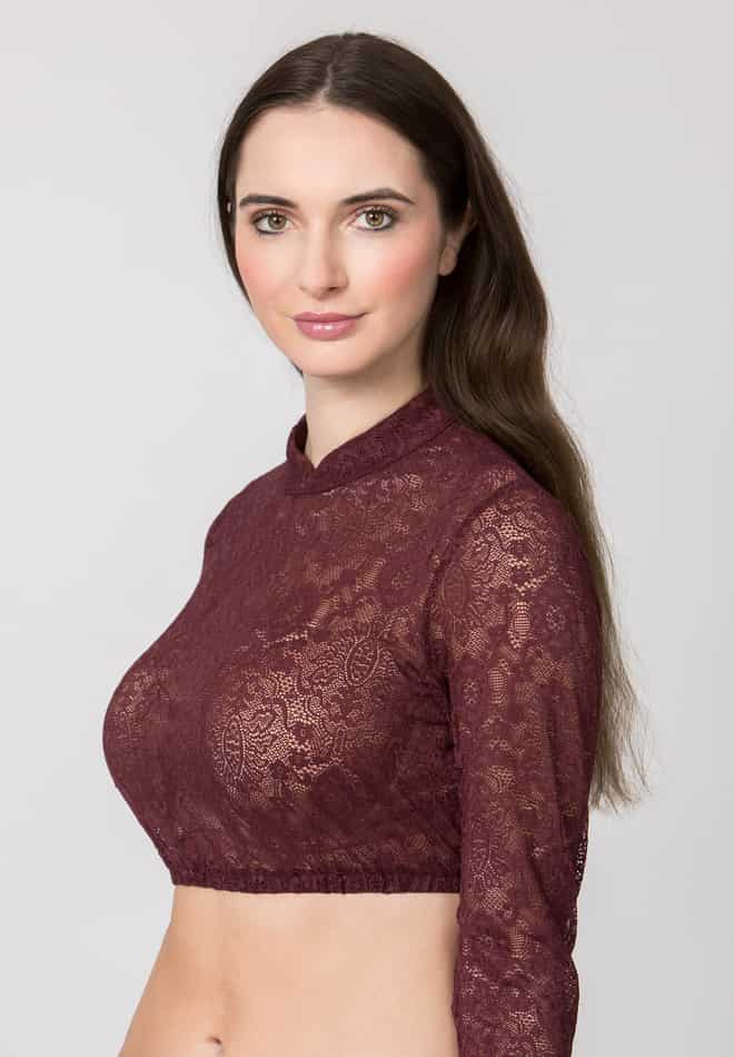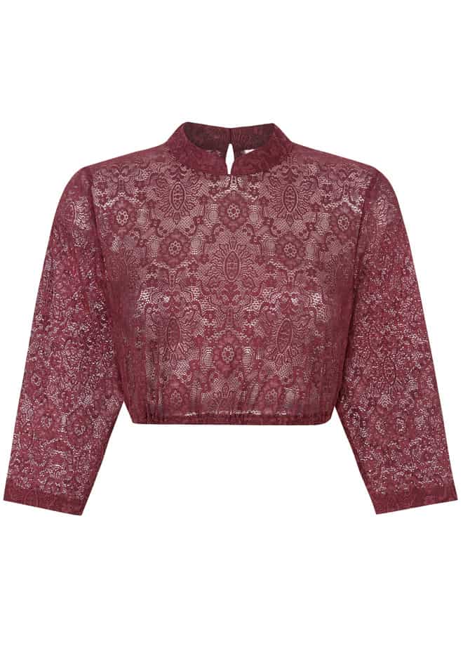 Die Dirndlbluse Celine bezaubert mit einem edlen, floralen Spitzenbild und verkörpert feminine Eleganz in ihrer modernsten Form. Ihr hochgeschlossener Schnitt mit feinem Stehkragen verleiht jedem Dirndl eine stilvolle, anmutige Ausstrahlung – perfekt für Frauen, die klassische Tracht mit einem zeitgemäßen, eleganten Twist kombinieren möchten.Die 3/4-Ärmel aus weicher, detailreich gearbeiteter Spitze schaffen eine harmonische Silhouette und umschmeicheln die Figur, ohne aufzutragen. Das filigrane Muster verleiht der Bluse eine romantische Leichtigkeit und lässt sie mühelos zu festlichen wie auch traditionellen Anlässen strahlen.Celine ist in vier wunderschönen Farbvarianten erhältlich und passt sich so jedem Stil und jeder Dirndlfarbe an. Dank ihres angenehmen Tragegefühls und der pflegeleichten Qualität wird sie schnell zum unverzichtbaren Liebling Ihrer Trachtengarderobe.Ein vielseitiger Klassiker, der jedes Dirndl um eine elegante, feminine Note ergänzt – stilvoll, zeitlos und mit Liebe zum Detail gefertigt.