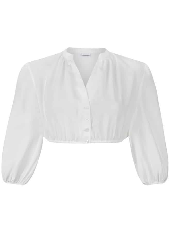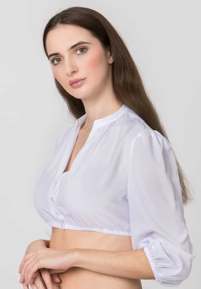 Die Dirndlbluse Florina steht für pure, unverfälschte Trachtenästhetik. Unifarben und ohne Spitze oder Muster gestaltet, setzt sie auf eine klassische Schlichtheit, die jedes Dirndl harmonisch ergänzt. Erhältlich in strahlendem Weiß oder tiefem Schwarz, bietet Florina die perfekte Grundlage für traditionelle wie moderne Trachtenlooks.Der elegante V-Ausschnitt mit feinen Knöpfen verleiht der Bluse eine feminine Linie und setzt das Dekolleté dezent, aber wirkungsvoll in Szene. Durch den klaren, reduzierten Schnitt entsteht ein zeitloser Stil, der sich vielseitig kombinieren lässt – ob zu farbenfrohen Stoffen, edlem Jacquard oder natürlichen Materialien.Die angenehm weiche Qualität macht Florina zum komfortablen Begleiter für lange Festtage, das Oktoberfest oder besondere Anlässe, bei denen eine klassische, gepflegte Ausstrahlung gefragt ist.Florina ist die ideale Wahl für alle, die eine schlichte, traditionelle und dennoch elegante Dirndlbluse suchen – ein vielseitiger Klassiker für jede Trachtengarderobe.