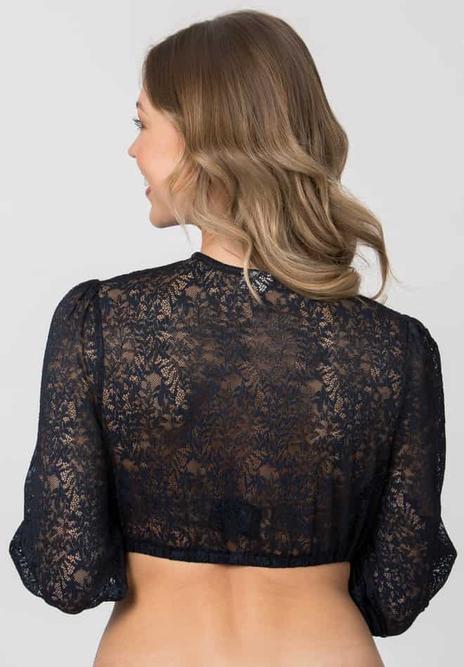 Die Dirndlbluse Rachel verbindet stilvolle Moderne mit romantischer Feminität und begeistert durch ihre vollständig aus floraler Spitze gefertigte Optik. Feine Blütenornamente und eine elegante Transparenz verleihen ihr eine besondere Leichtigkeit, die jedes Dirndl auf edle Weise ergänzt. Erhältlich in vier modernen Farben, lässt sich Rachel mühelos zu unterschiedlichen Stilrichtungen kombinieren – von klassisch bis trendbewusst.Der tropfenförmige Ausschnitt sorgt für eine feminine Note, während die Knopfleiste dem Design eine traditionelle, zugleich moderne Struktur verleiht. Die 3/4-Ärmel aus feiner Spitze schenken der Bluse eine stilvolle Silhouette und setzen die filigrane Musterung besonders schön in Szene.Durch die angenehm weiche Qualität trägt sich Rachel wunderbar komfortabel und wird schnell zum eleganten Allrounder Ihrer Trachtengarderobe – perfekt für festliche Anlässe, das Oktoberfest oder jeden Moment, in dem ein Hauch moderner Eleganz gefragt ist.Eine Bluse voller Zartheit, Stil und moderner Schönheit – feminin, vielseitig und unverwechselbar.