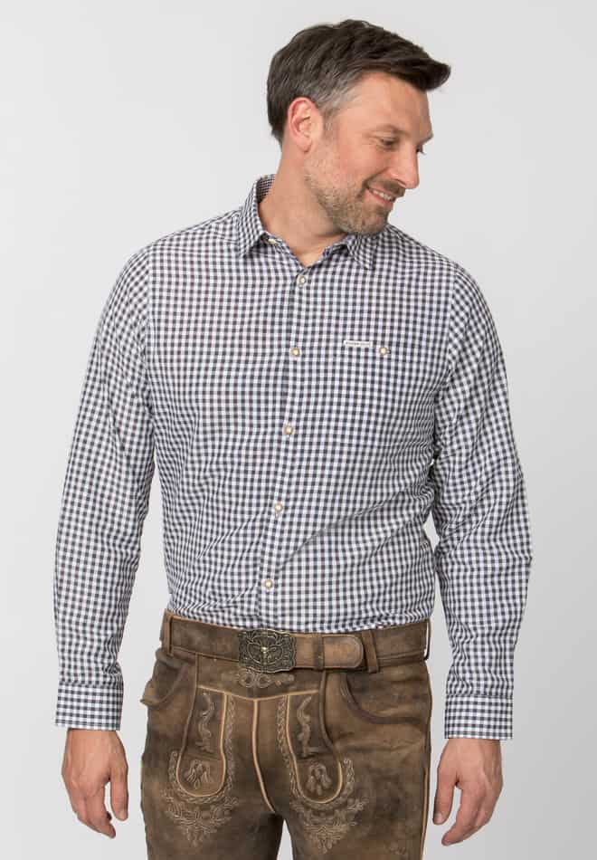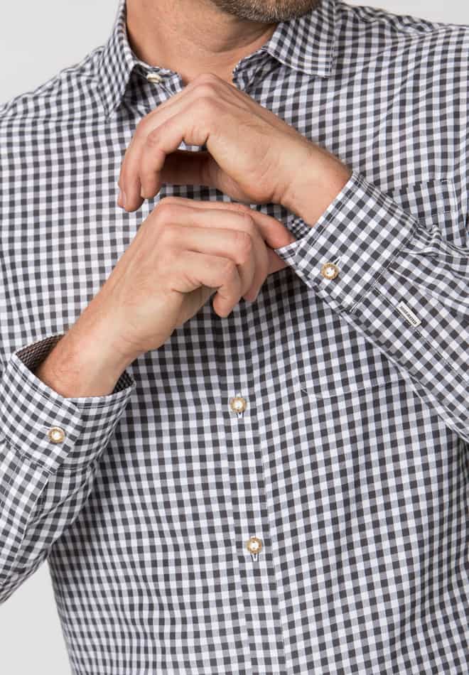 Trachtenhemd Campos von Stockerpoint Classics. Der Trachten Klassiker aus angenehmer Baumwoll-Qualität in Karo-Optik ist die perfekte Ergänzung zum traditionellen Trachtenoutfit. Dieses hochwertige Hemd ist perfekt kombinierbar zu deiner Lieblingshose und ist unentbehrlich als Kombipartner zu unseren Trachtenwesten und Trachtenjacken. Das Modell ist in „Comfort Fit“ geschnitten und passt sich jeder Körperform perfekt an. Die trachtigen Hornknöpfe verleihen eine besondere Note und prägen den traditionellen Stil.