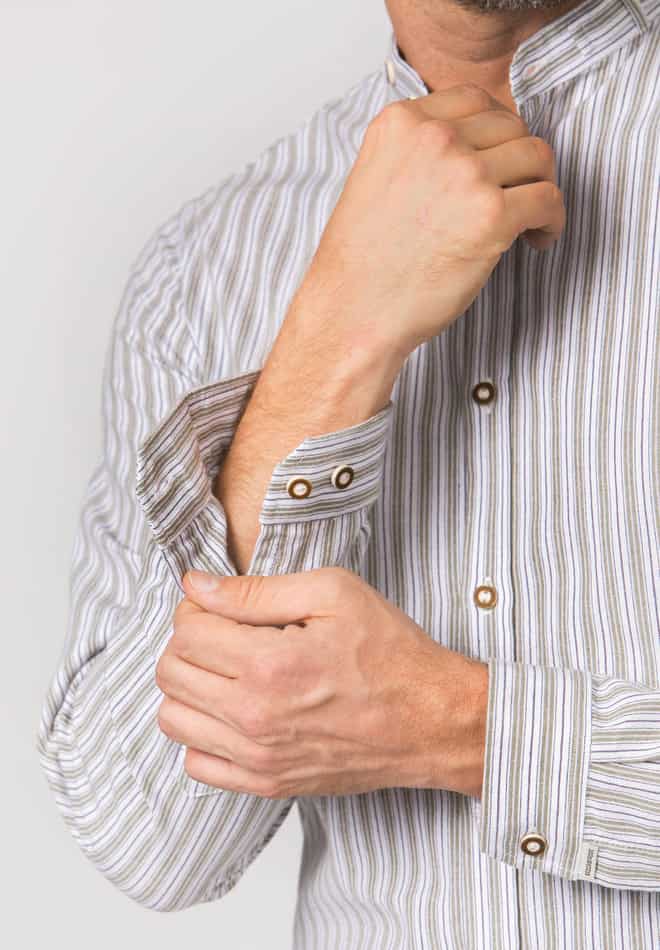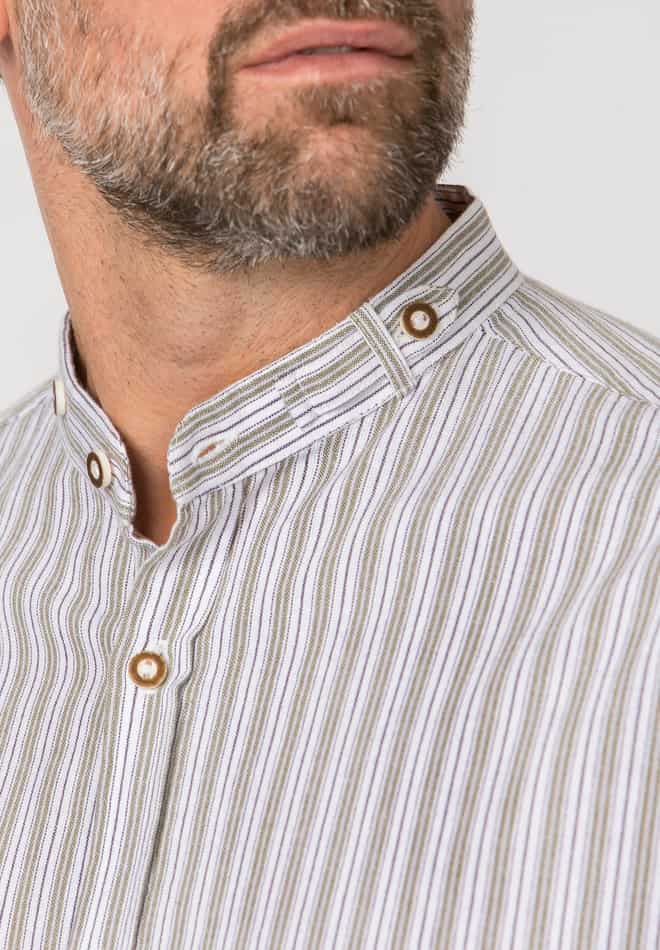 Das langärmlige Trachtenhemd Dominik von Stockerpoint Classics vereint traditionelle Trachtenästhetik mit zeitgemäßem Design. Das feine Streifenmuster sorgt für einen gepflegten, klassischen Look, während der Rundhalsausschnitt mit Stehkragen dem Hemd eine moderne, maskuline Note verleiht.Die Knöpfe in Hornoptik setzen traditionelle Akzente und unterstreichen die hochwertige Verarbeitung. Dank des klaren, schlichten Schnitts bietet Dominik optimalen Tragekomfort und Bewegungsfreiheit – ideal für Volksfeste, festliche Anlässe oder stilbewusste Alltagslooks.Mit seinem zeitlosen Stil ist das Hemd Dominik ein vielseitiger Klassiker für jede Trachtengarderobe, der Tradition und moderne Eleganz harmonisch vereint.