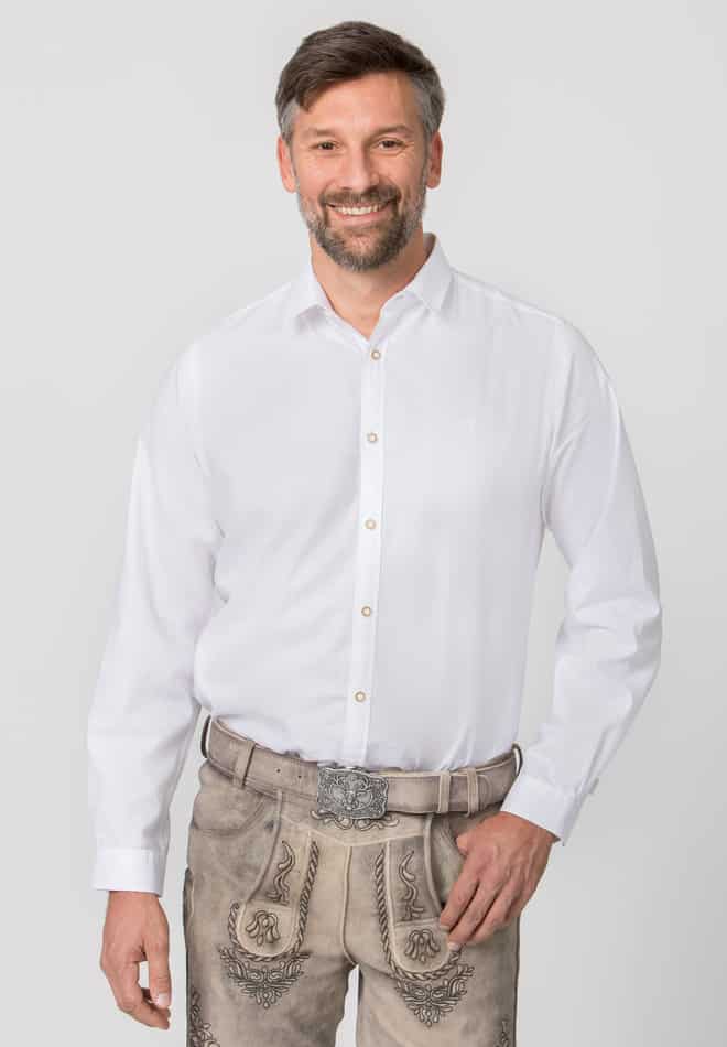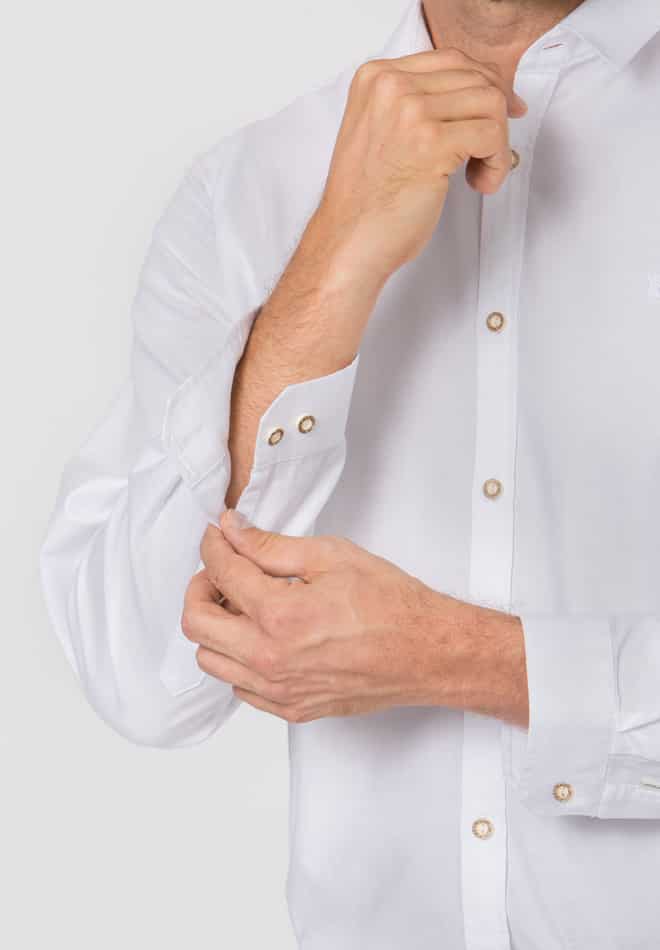 Trachtenhemd Ernesto von Stockerpoint Classics in weiß. Der Trachten Klassiker aus angenehmer Baumwoll-Qualität ist die perfekte Ergänzung zum traditionellen Trachtenoutfit. Dieses hochwertige Hemd ist perfekt kombinierbar zu deiner Lieblingshose und ist unentbehrlich als Kombipartner zu unseren Trachtenwesten und Trachtenjacken. Das Modell ist in „Comfort Fit“ geschnitten und passt sich jeder Körperform perfekt an. Die trachtigen Hornknöpfe verleihen eine besondere Note und prägen den traditionellen Stil.