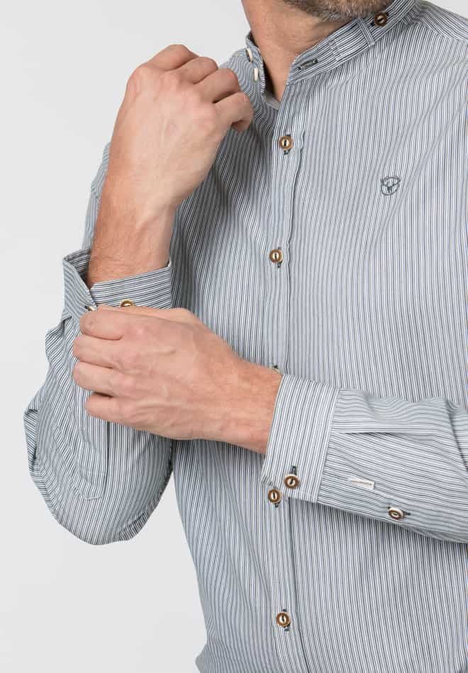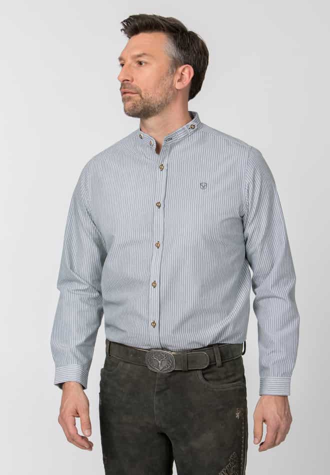 Das stilvolle Trachtenhemd Frederik überzeugt mit seiner klassischen Streifenoptik und dem authentischen Stehkragen mit traditionellen-Knöpfen. Dieses hochwertige Herrenhemd aus pflegeleichter Baumwoll-Mischung kombiniert zeitlose Trachtenästhetik mit modernem Tragekomfort. Perfekt für Oktoberfest, Volksfeste oder den Alltag – das Langarmhemd passt hervorragend zu Lederhosen und komplettiert jeden Trachten-Look. Die feine Streifenstruktur und der Comfort-Fit machen dieses Stockerpoint Hemd zum unverzichtbaren Begleiter für traditionsbewusste Herren. Erhältlich in den Farben Blau, Bordeaux und Grün.