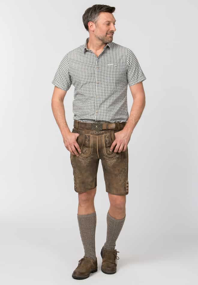 | Deutsche Größe | Internationale Größe | Bundumfang in cm | Gesäßumfang in cm | Oberschenkelumfang in cm (8cm unter Schritt gemesen) | Kniebund in cm (8cm unter Kniekehle gemessen) | Hosenträger in cm |