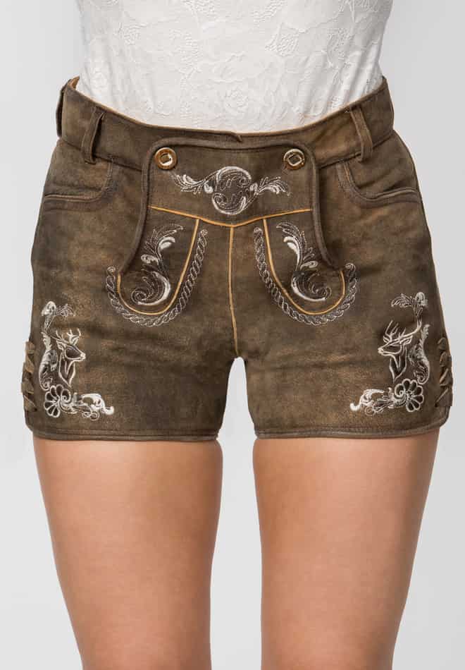 Trachten Lederhose Leya von Stockerpoint. Die Hose bekommt durch das weiche, gewachste Wildbockleder ihren charakteristischen Trachtenlook. Die aufwendige Stickerei, die farblich abgesetzte Paspelierung und die seitlichen Schnürungen runden das klassische Modell gekonnt ab. Die hochwertigen Hornknöpfe sorgen für den trachtigen Look. Der kurze, gerade Schnitt sorgt für eine legere Passform und einen bequemen Tragekomfort. Ein Lieblingsmodell für viele Gelegenheiten.