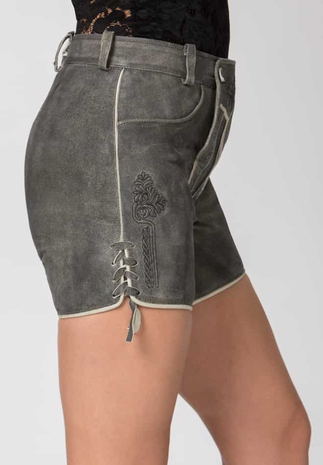 Die Damen Trachtenlederhose Nelly von Heimatgwand vereint traditionelle Handwerkskunst mit einer modernen, zeitgemäßen Silhouette. Gefertigt aus 100 % hochwertigem Wildbockleder, überzeugt sie durch ihre außergewöhnliche Weichheit und ein angenehm natürliches Tragegefühl – ideal für lange Festtage und stilvolle Auftritte. Der gerade Schnitt in moderner Länge sorgt für eine schmeichelhafte Passform und unterstreicht die feminine Linie, ohne an Komfort einzubüßen. Klassische Plattstickereien mit traditionellen Motiven verleihen der Lederhose ihren authentischen Charakter, während traditionelle Trachtenknöpfe die hochwertige Verarbeitung stilvoll abrunden. Besonders praktisch und komfortabel zeigt sich die Schnürung am Bein, die zusätzliche Flexibilität bietet und eine individuelle Anpassung ermöglicht. So entsteht eine Trachtenlederhose, die Tradition respektiert und zugleich den Anspruch moderner Trachtenmode erfüllt. Nelly ist die perfekte Wahl für Frauen, die eine hochwertige Lederhose mit klassischem Charme, moderner Passform und erstklassigem Tragekomfort suchen – vielseitig kombinierbar und zeitlos schön.