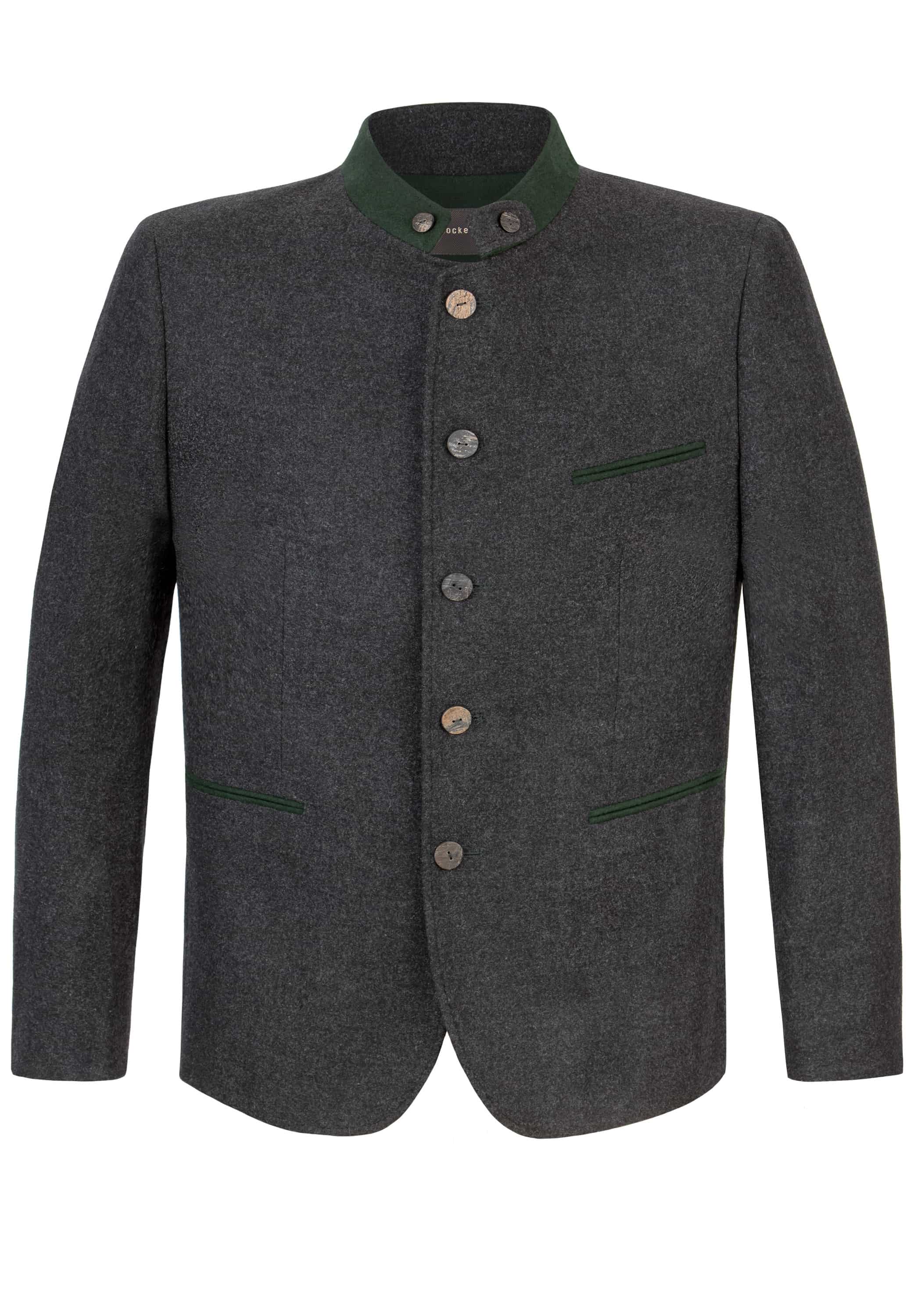 Die Trachtenjacke Augusto vereint klassische Trachtenästhetik mit hochwertiger Verarbeitung und zeitloser Eleganz. Gefertigt aus einem feinem Lodenstoff, überzeugt die Jacke durch angenehme Haptik, Wärme und eine formstabile Passform – perfekt für traditionelle Anlässe und festliche Trachtenoutfits. Ein farblich abgehobener Rundhalskragen setzt elegante Akzente und unterstreicht die klassische Linienführung. Traditionelle Trachtenknöpfe und eine präzise Paspelierung verleihen der Jacke ein authentisches, edles Finish. Der Rundhalsausschnitt sorgt für einen harmonischen Look, der sich sowohl über Hemd oder Trachtenhemd als auch solo hervorragend tragen lässt. Augusto ist die ideale Wahl für Männer, die Wert auf hochwertige Materialien, stilvolle Details und klassische Trachtenmode legen.