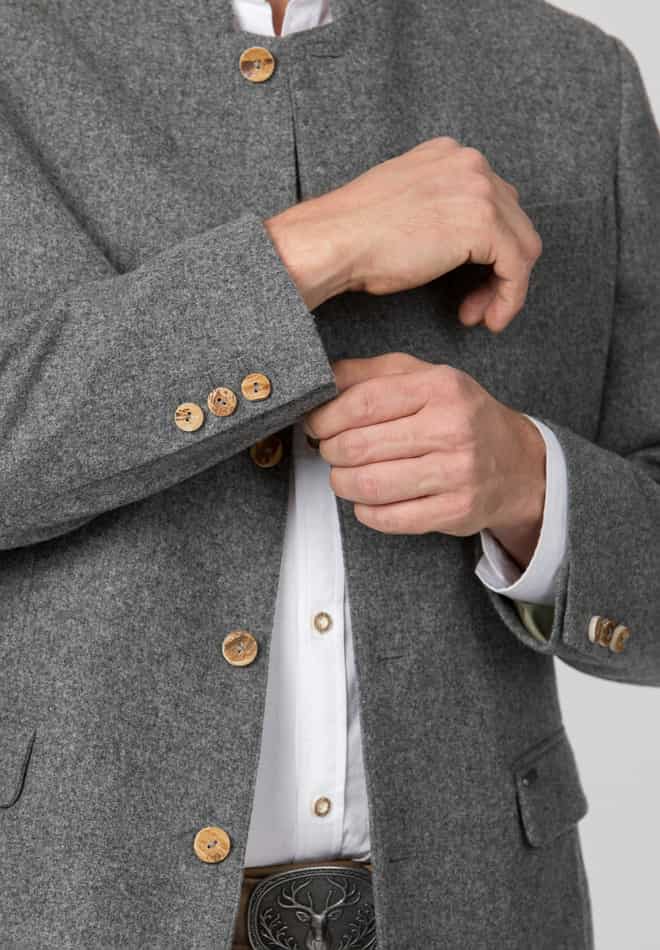 Trachtensakko Xaver von Stockerpoint Classics verkörpert ein harmonisches Zusammenspiel aus Tradition und zeitlosem Design. Gefertigt aus hochwertigem, melierten Lodenstoff, besticht dieser Trachtenjanker durch seine unvergleichliche Qualität. Sein klassischer, trendiger Schnitt gewährleistet nicht nur eine hervorragende Passform, sondern auch ein Höchstmaß an Komfort. Der traditionelle Stehkragen betont das markante Design dieses Meisterstücks. Die Verwendung traditioneller Hornknöpfe vollendet das edle Erscheinungsbild und unterstreicht die Liebe zum Detail. Dieses Sakko ist der ideale Begleiter zu unseren Lederhosen und verleiht Ihrer Garderobe eine zeitlose Eleganz.
