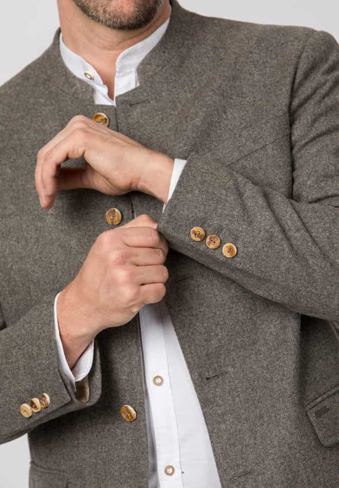 Trachtensakko Xaver von Stockerpoint Classics verkörpert ein harmonisches Zusammenspiel aus Tradition und zeitlosem Design. Gefertigt aus hochwertigem, melierten Lodenstoff, besticht dieser Trachtenjanker durch seine unvergleichliche Qualität. Sein klassischer, trendiger Schnitt gewährleistet nicht nur eine hervorragende Passform, sondern auch ein Höchstmaß an Komfort. Der traditionelle Stehkragen betont das markante Design dieses Meisterstücks. Die Verwendung traditioneller Hornknöpfe vollendet das edle Erscheinungsbild und unterstreicht die Liebe zum Detail. Dieses Sakko ist der ideale Begleiter zu unseren Lederhosen und verleiht Ihrer Garderobe eine zeitlose Eleganz.