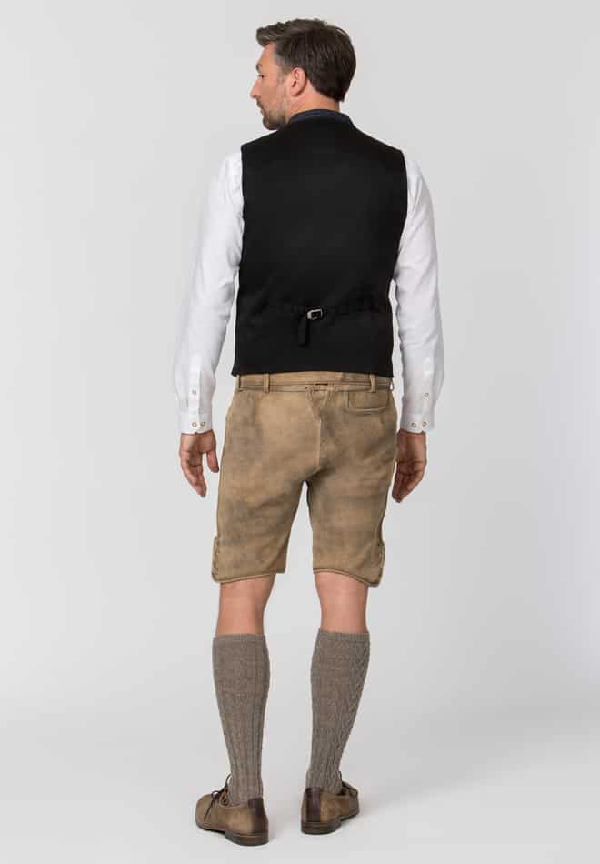 | Deutsche Größe | Internationale Größe | Bundumfang in cm | Gesäßumfang in cm | Oberschenkelumfang in cm (8cm unter Schritt gemesen) | Kniebund in cm (8cm unter Kniekehle gemessen) | Hosenträger in cm |